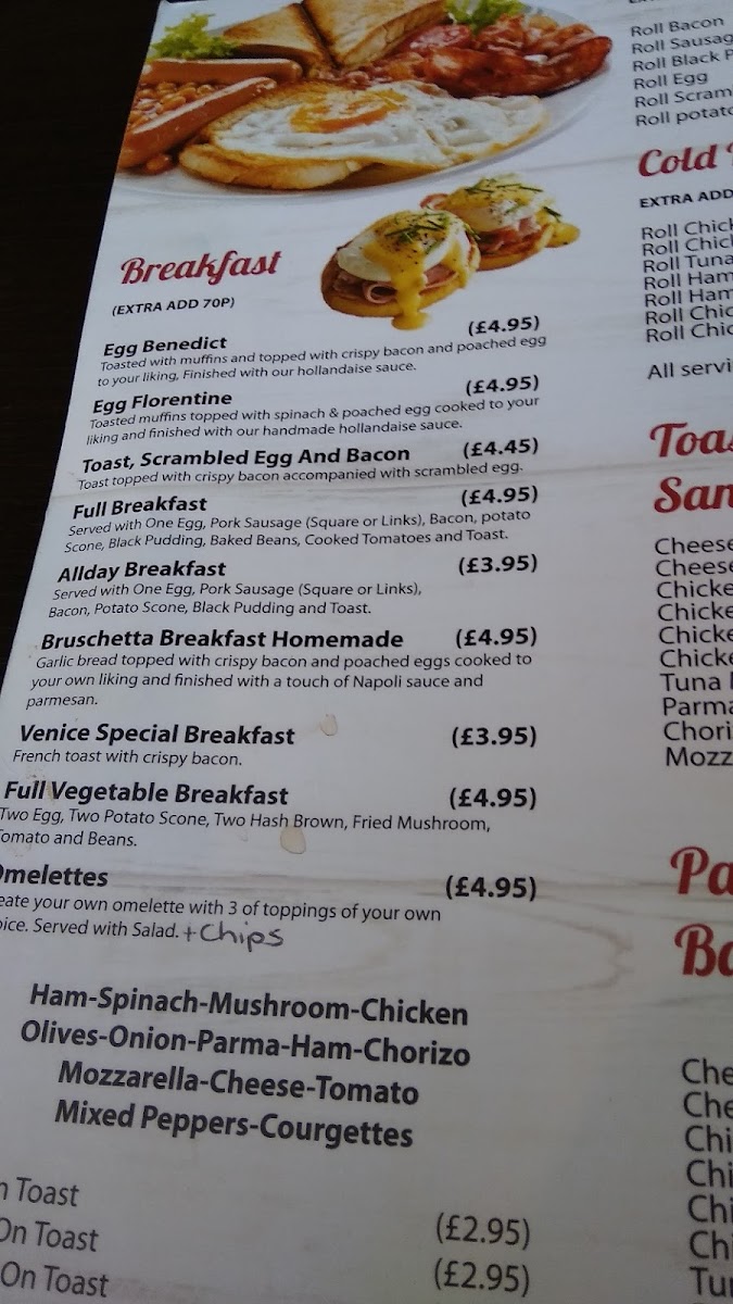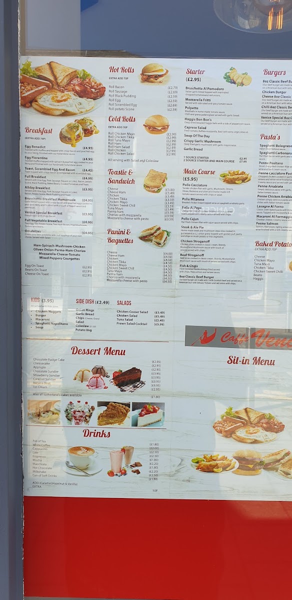 Welcome to Caffe Venice, a charming cafe nestled in the heart of Greenock, offering a delightful fusion of flavors that cater to all tastes. Their menu is a vibrant mix of hearty dishes, from comforting mains like Pollo Cacciatore and Steak & Ale Pie to lighter options such as Cold Rolls filled with chicken and tuna.
